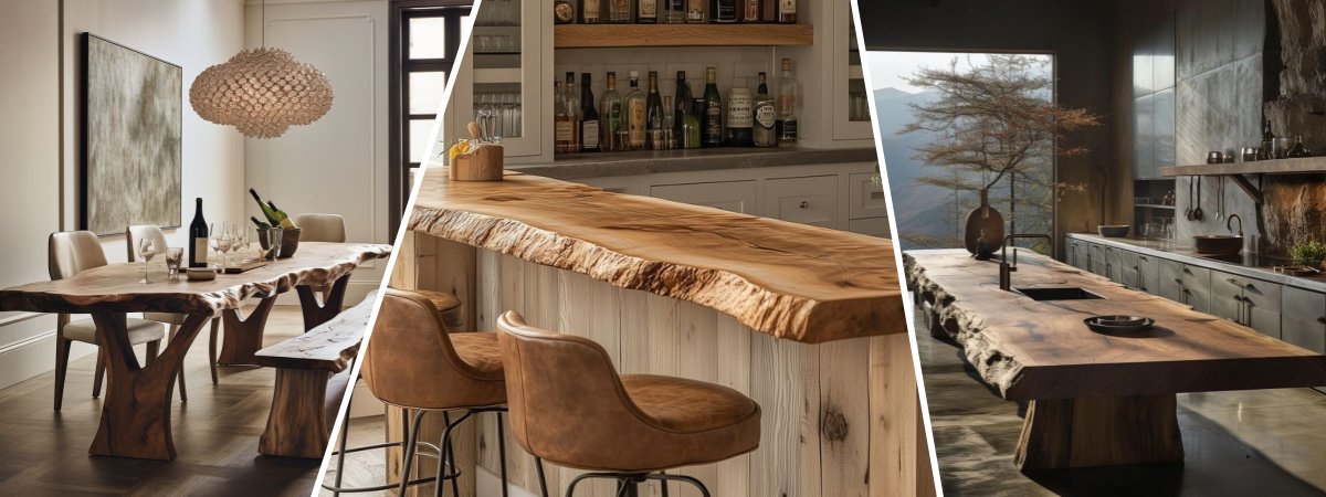 Muebles modernos de alta calidad para el hogar Nature Live Edge Nogal Cocina Restaurante Mesa de comedor de madera