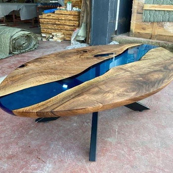 Mais design de móveis de cozinha direto da fábrica com borda viva azul oceano transparente madeira de nogueira restaurante resina epóxi rio mesa de jantar