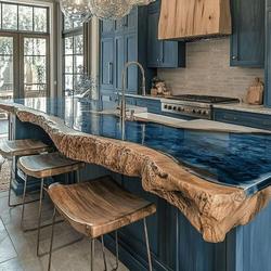 Daha tasarım mutfak mobilya fabrikasından doğrudan canlı kenar mavi okyanus temizle ceviz ahşap restoran epoksi reçine nehir yemek masası